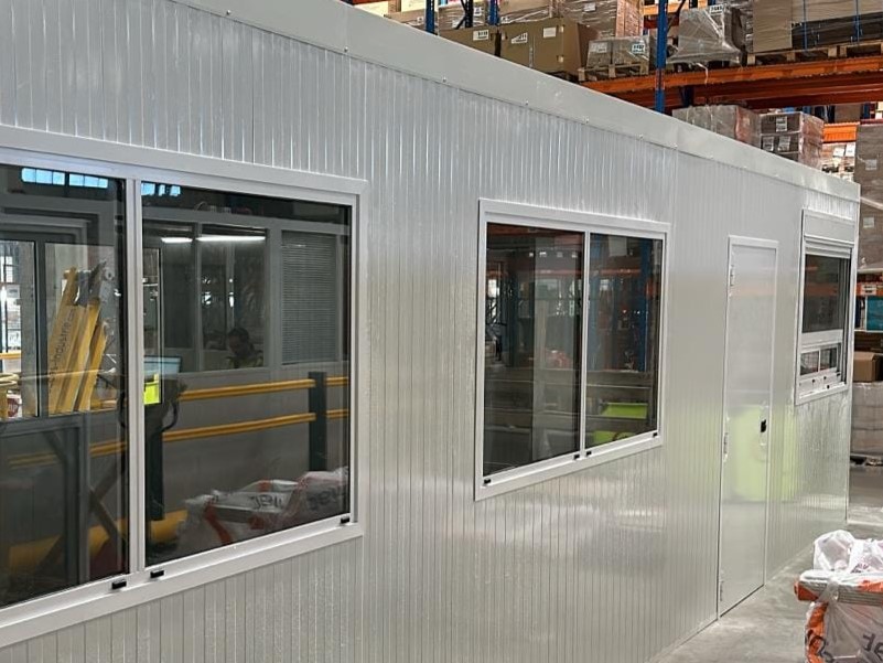 RÉALISATION : Création de bureaux dans un centre logistique, pose de cloisons, électricité et parquet flottant.