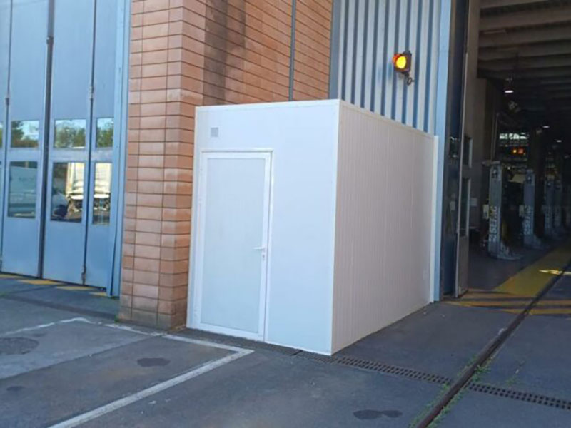 RÉALISATION : Création d’un local spécial rangement pour notre client avec pose de caillebotis, bac de rétention et électricité.