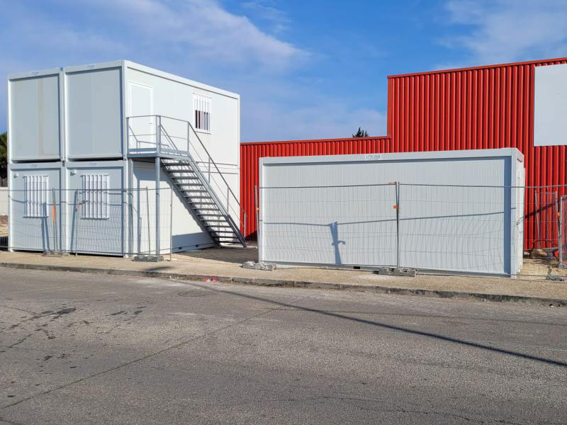 Pose de bungalows à usage de bureaux avec sanitaires pour Auchan Hypermarché Avignon Sud Mistral 7